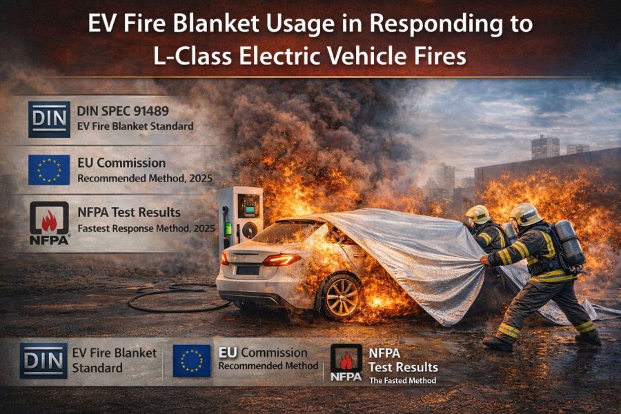 In the report titled “Fire Safety – Electric Vehicles and Charging Infrastructure,” published by the European Commission in 2025, fire blanket use was recommended as the primary intervention method for electric vehicle fires.