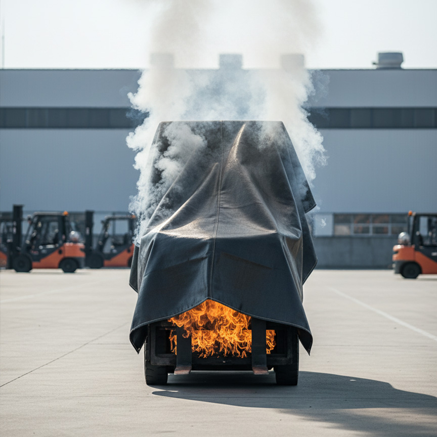 With the increasing use of lithium-ion battery-powered forklifts and pallet carriers, ensuring workplace safety has become more important than ever. The Nivofire Forklift Fire Limitation Blanket provides a reliable and effective solution to protect factories, warehouses, and other industrial facilities during electric forklift fires.